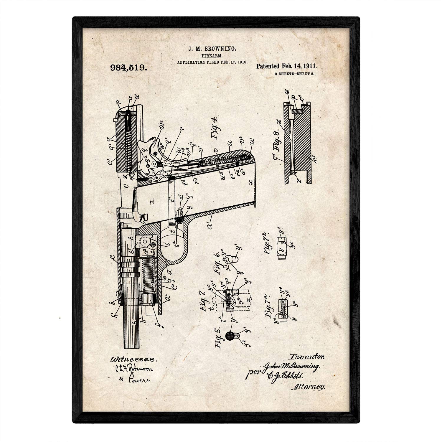 Nacnic Poster Patent Browning Foglio Con Il Vecchio Brevetto Di Disegno In Formato A3 E Vintage Sfondo Arte Poster