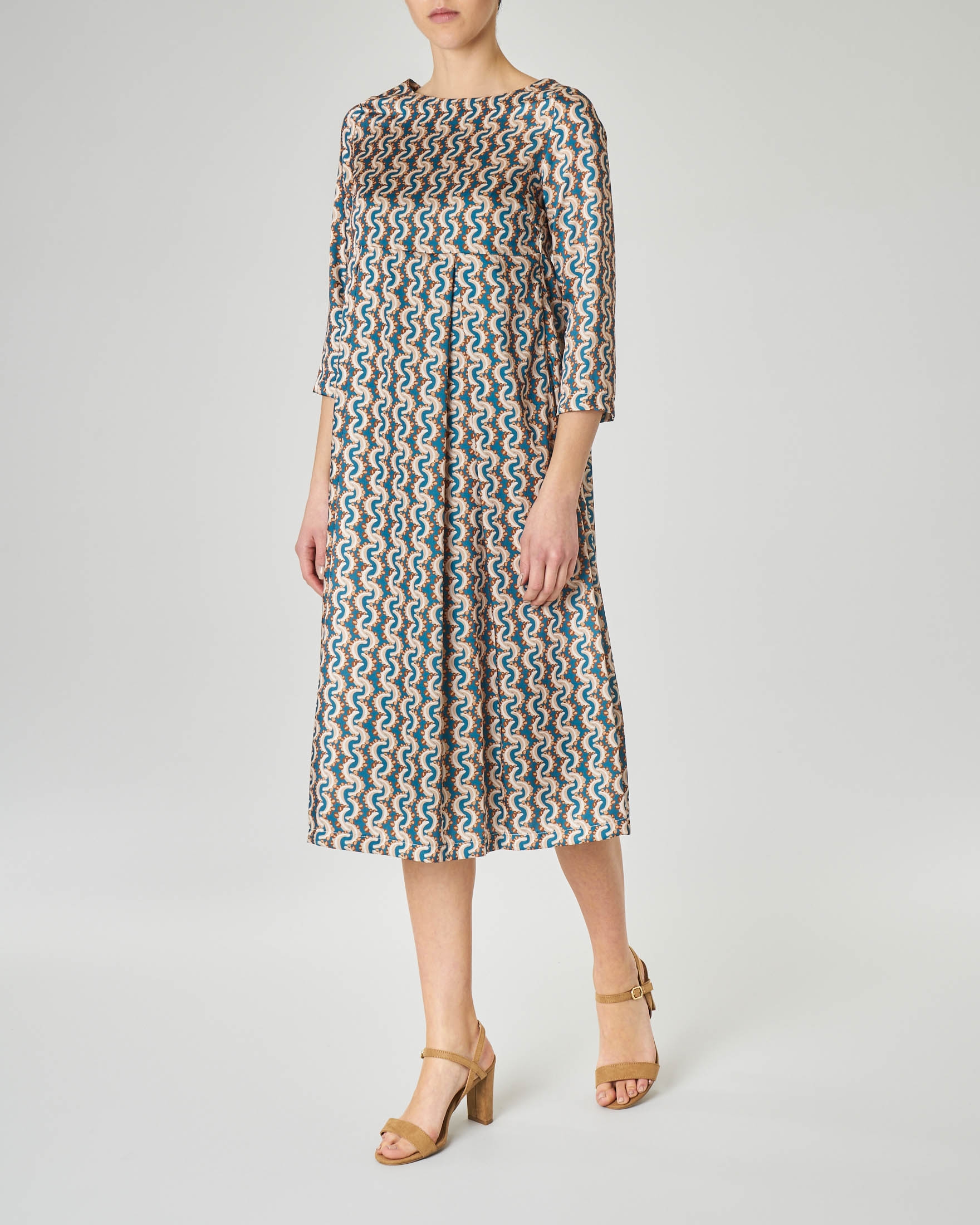 Abito Midi Con Disegni Geometrici Ottanio E Beige Con Taglio Alto In Vita Pellizzari E Commerce