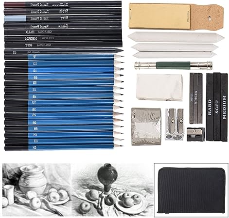 Lugoo Matite Di Disegno Artistico Matite Colorate And Grafite Carbonio Matite Di Legno 34pcs Amazon It Casa E Cucina