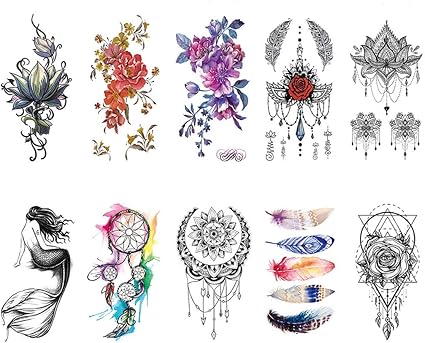 Cargen 10 Fogli Tatuaggi Temporanei Fiore Petalo Tatuaggio Mandala Body Art Pittura Ad Acquerello Sogno Acchiappasogni Adesivi Per Donne Ragazze Petto Gambe Braccio Amazon It Bellezza