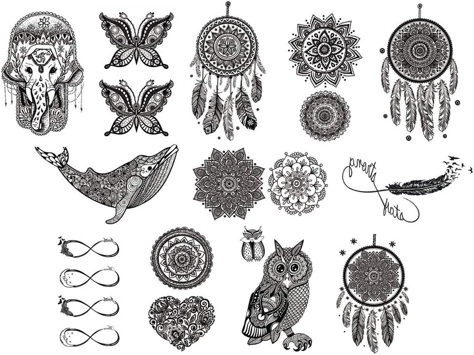 10 Fogli Di Piccoli Tatuaggi Neri E Colorati Adesivi A Forma Di Acchiappasogni Piuma Infinito Loto Rosa Amazon It Bellezza
