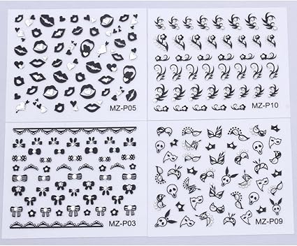 4 Foglio 3d Adesivi Sticker Multi Disegni Bianco Nero Per Decorazione Unghie Diy Amazon It Giochi E Giocattoli