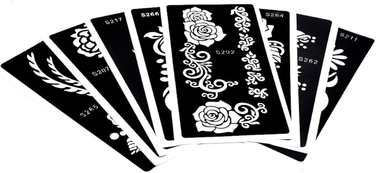8 Fogli Rose Flower Henna Tattoo Stencil Aerografo Pittura Colorato Disegno Donne Body Art Tool Amazon It Bellezza