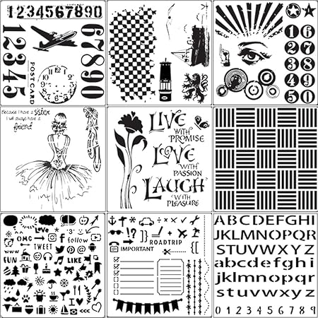 Hfbwjfhgdj 9 Stencil Per Disegno Aerografo Fai Da Te Album Di Ritagli Decorazioni Amazon It Casa E Cucina