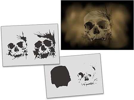 Umr Design As 323 Skull Sagoma Per Aerografo Step By Step Size Xl Amazon It Casa E Cucina
