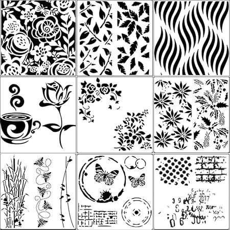 Bhty235 Stencil Per Disegno Ad Aerografo Pittura Fai Da Te Album Di Ritagli 9 Pezzi Amazon It Casa E Cucina