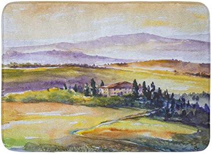 Ecnm56b Zerbini Tappeti Da Bagno Tappetino Colorato Italia Acquerello Di Toscana Paesaggio Rurale Campi Alberi Fattoria E Montagne In Alba Verde 15 8 X23 6 Amazon It Casa E Cucina