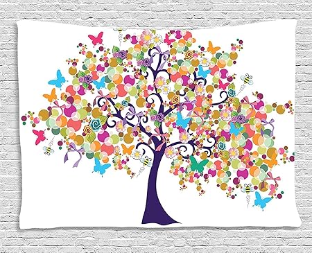 Albero Della Vita Decor Collection Shaded Farfalla Falena Albero Colorato Ali New Life Theme Illustrazione Hope Home Soggiorno E Camera Dormitorio Arazzo Da Parete 80 W X 60l Pollici Multi Multi 21