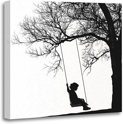 Emvency Dipinto Su Tela 50 X 50 Cm Motivo Bambina Nera Sull Altalena Sotto L Albero Con Silhouette Realistica Di Altalena Seduta Stampa Decorativa Per La Casa Contemporaneo 16 X 16 Multi 1