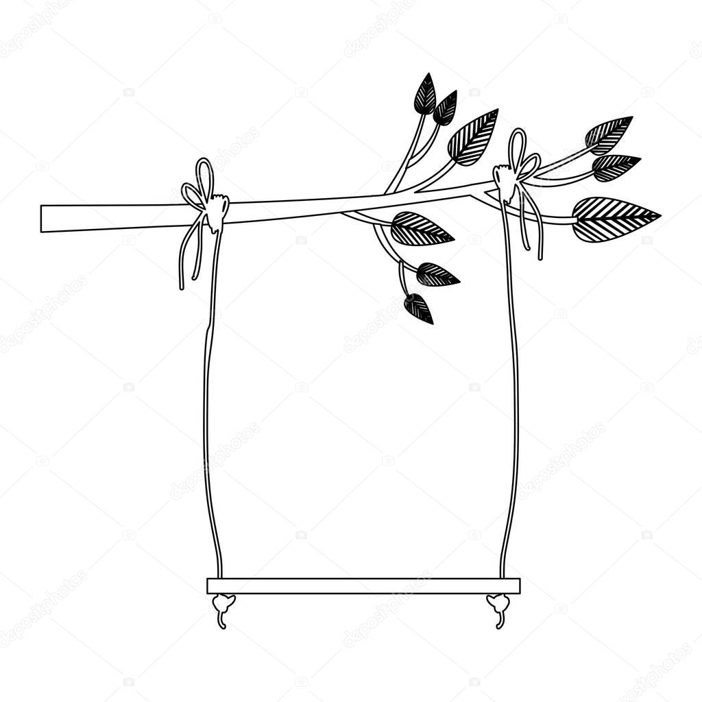 Un Bianco E Nero Di Disegno Di Un Altalena Appeso A Un Albero Foto Stock Alamy