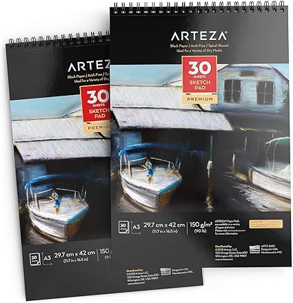 Arteza Album Da Disegno Fogli Neri A3 Set Da 2 60 Fogli 150gsm 30 Fogli Ciascuno Sketchbook Rilegato A Spirale Carta Spessa Per Grafite Matite Colorate Carboncini Pastelli Penne Gel Amazon It Casa