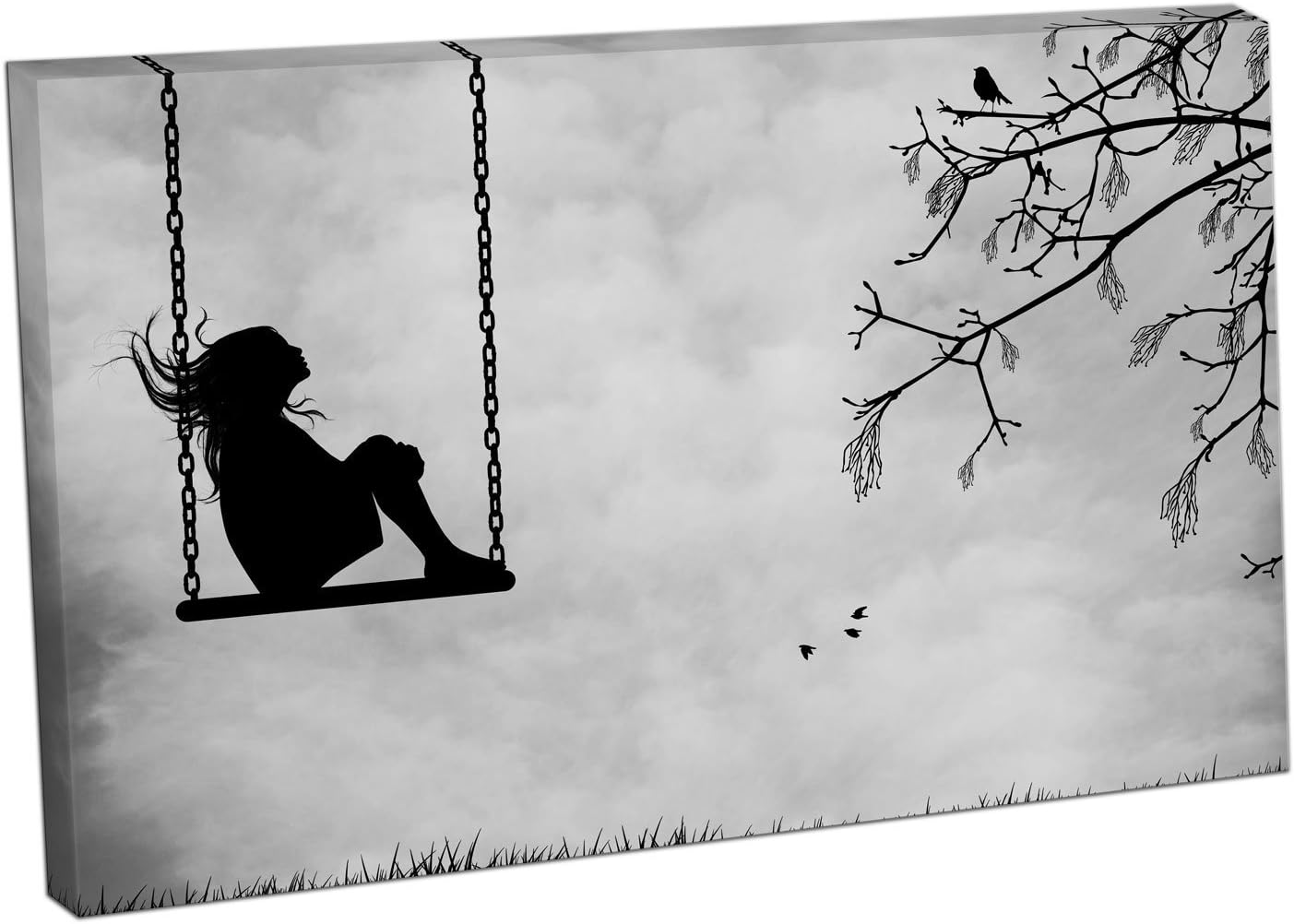 Stampa Su Tela Ragazza Su Altalena Al Tramonto Picture Art Black White 24x16 Inch Amazon It Casa E Cucina