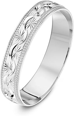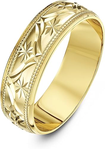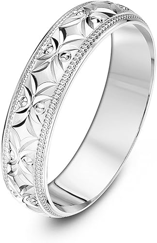 Theia Anello Nuziale In Oro Giallo O Oro Bianco 9k 375 Decorato Con Disegni A Fiore E Con Bordo Milligranato In Rilievo Lucido 5 7mm Amazon It Gioielli