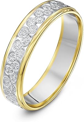 Theia Anello Nuziale Bicolore In Oro Giallo E Bianco 9k 375 Pesante Piatto Disegni A Forma Di Diamante 5 6 Mm Amazon It Gioielli