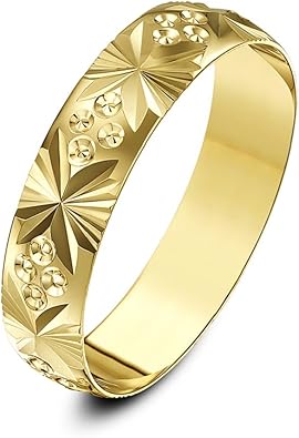 Theia Anello Nuziale In Oro Giallo O Oro Bianco 9k 375 Pesante A Forma Di D Disegno A Ventagli E Cerchi 5 6 Mm Amazon It Gioielli