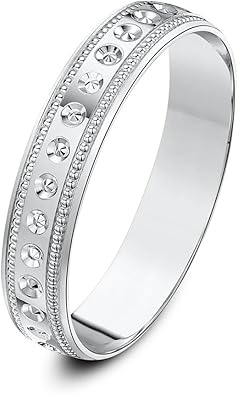 Theia Anello Nuziale In Oro Giallo O Oro Bianco 9k 375 Pesante A Forma Di D Disegno A Cerchi E Bordo Milligranato 4 6mm Amazon It Gioielli