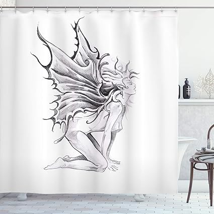 Abakuhaus Tatuaggio Tenda Da Doccia Angeli Disegno A Matita Tessuto Set Di Decorazioni Per Il Bagno Con Ganci Per La Vasca Da Bagno 175 Cm X 220 Cm Bianco E Nero Amazon It