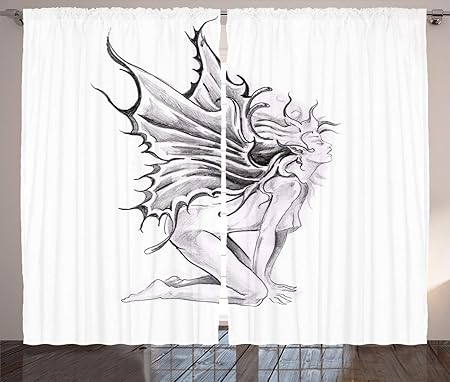 Abakuhaus Tatuaggio Tenda Angeli Disegno A Matita Salotto Camera Da Letto Tende Per Finestra Due Pannelli Set 280 X 225 Cm Bianco E Nero Amazon It Casa E Cucina