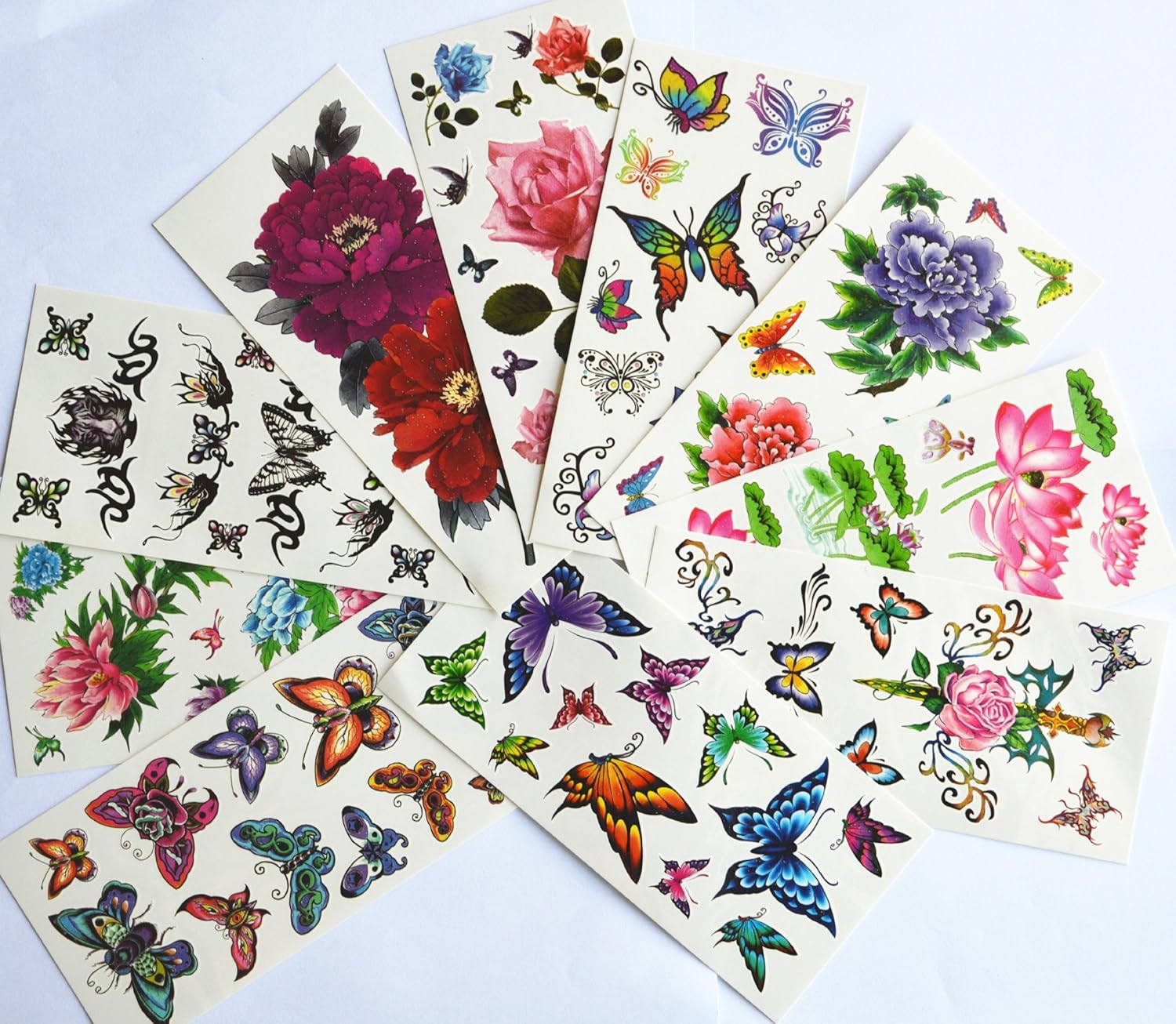10pcs Package Vendita Caldo Stickers Tatuaggio Temporaneo Vari Disegni Tra Cui Loto Farfalla Angeli Pesci Rossi Fiori Neri Farfalle E Fiori Colorati Etc Scrapbooking Adesivi