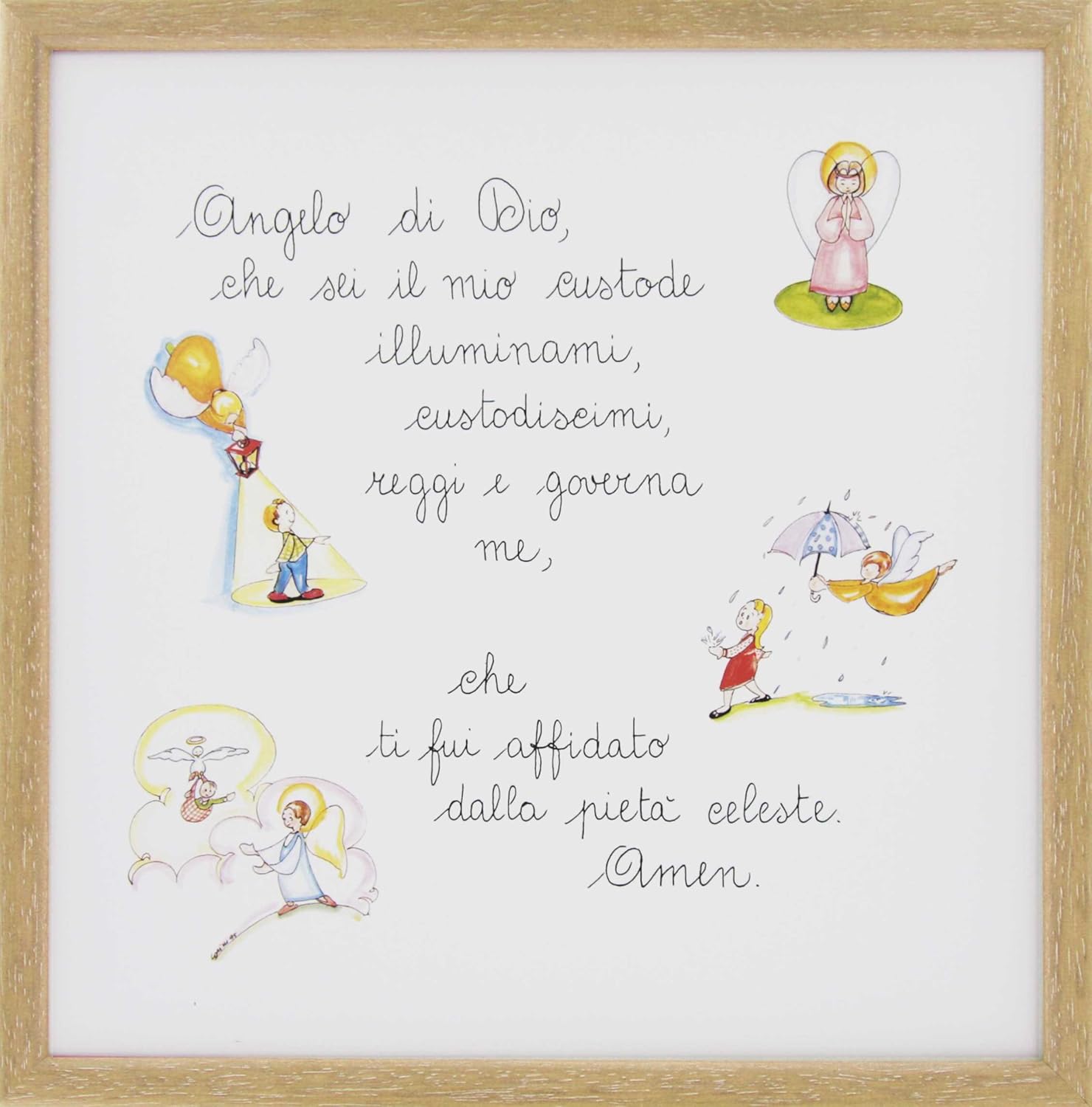 Quadro Con Angelo Di Dio Illustrato E Colorato Cm 29x29 Cornice In Legno Neutro Amazon It Casa E Cucina