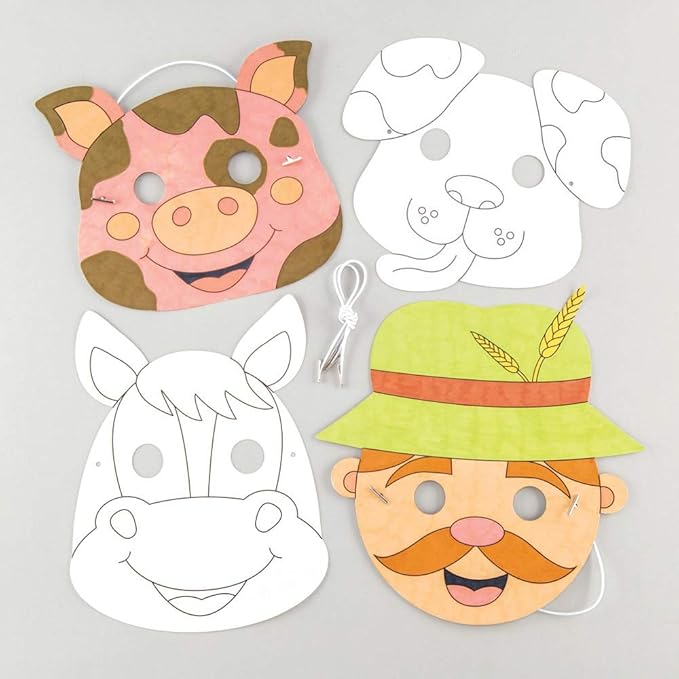 Baker Ross Maschere Da Colorare Con Animali Della Fattoria Confezione Da 4 Maschere Assortite Con Animali Della Fattoria Per Bambini Da Decorare E Indossare Per Feste O Travestimenti Amazon It Abbigliamento