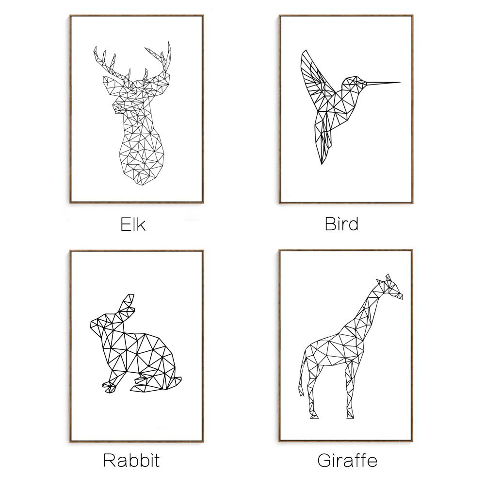 Acquista Cervi Geometrici Giraffa Coniglio Picchio Volante Poster E Stampe Stampe Su Tela Wall Art Disegni A Mano Pittura Immagini Minimaliste Soggiorno A 7 36 Dal Maggiequan Dhgate Com