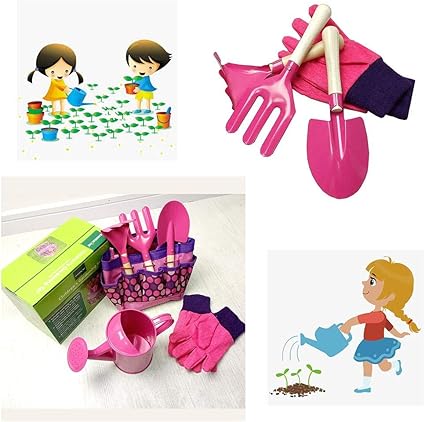 Womdee Set Di Attrezzi Da Giardino Per Bambini Set Di Giocattoli Da Giardinaggio Con Borsa Annaffiatoio Forchetta Rastrello Pala Guanti Giardinaggio Per Bambini Rosa Amazon It Fai Da Te