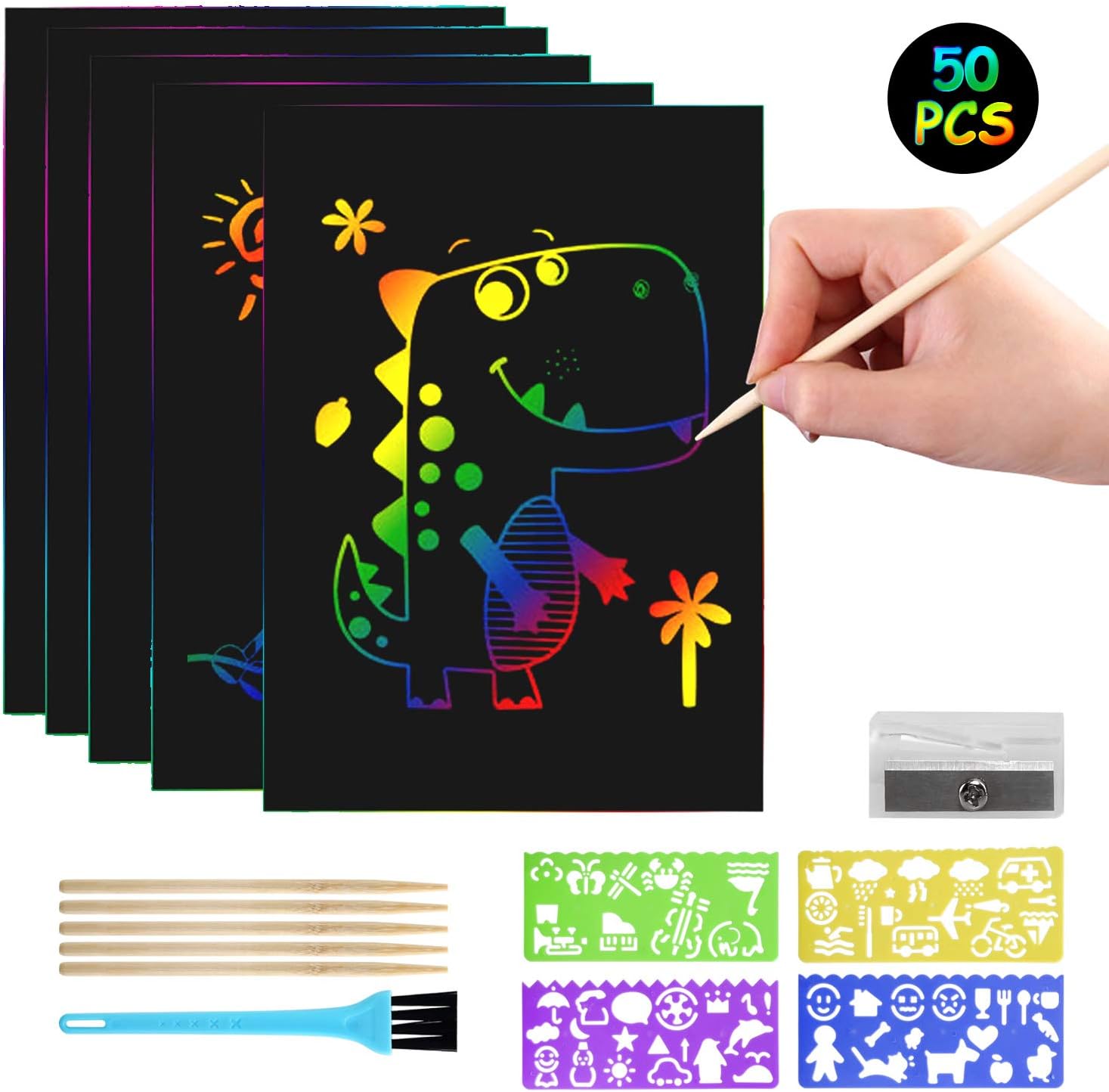 Leadsatr Fogli Di Disegni Scratch Art 50 Fogli Arcobaleno Da Grattare Set Artistico Creativo Fogli Arcobaleno Colorato Da Scarabocchiare Scratchboard Per Adulti E Bambini Con 4 Strumenti Giochi E Giocattoli Attivita Creative