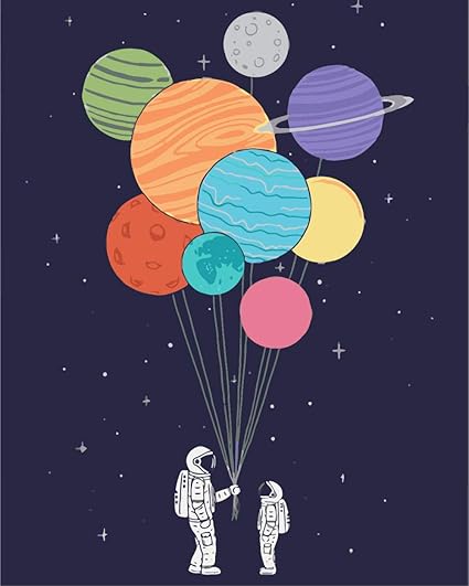 Wlhznbh Dipingere Con I Numeri Pianeta Colorato Astronauta Immagine Principiante Disegno Di Numeri Bambini Adulti Fai Da Te Pittura A Olio Con Kit 40 50 Cm B Senza Cornice Amazon It Casa