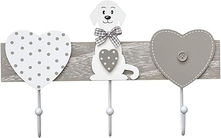 Arredamento Appendiabiti Da Muro 3 Ganci In Legno Ganci Appendiabiti Decorativi Con Cuore E Cane Disegno Grigio E Bianchi Coat Hooks Rack Dog Desig Attaccapanni Montato Da Parete Ingresso Casa E Cucina