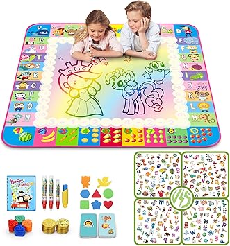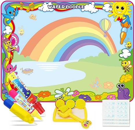 Sunyjoy 2 In 1 Grande Acqua Tappeto Doodle 100 X 100cm Doodle Tappeto Magico Bambini Arcobaleno Disegno Magico Mat Gioco Di Puzzle Giocattoli Educativi Per I Piu Piccoli Con Quaderno Per L Acqua