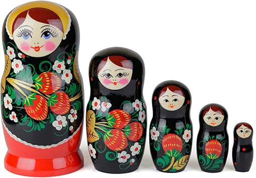 Matrioske Russe 5 Matrioska Stile Hohloma Babushka In Legno Giocattolo Regalo Disegno Con Foglie Nere E Dorate E Bacche Rosse Realizzata A Mano In Russia Hohloma 5 Pezzi 17 Cm