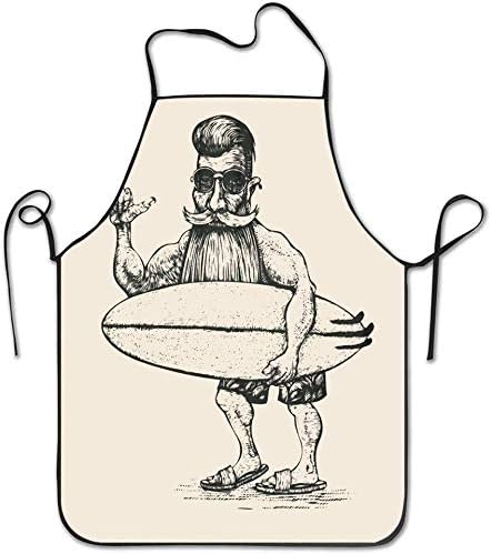 Hipster Surfer Con Barba Baffi Occhiali Da Sole E Tavola Da Surf Incisione Stile Linocut Surf Grembiule California Pulizia Amazon It Casa E Cucina