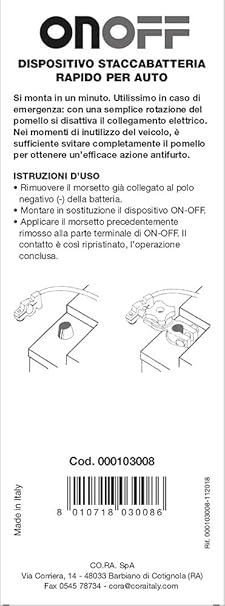 Cora 000103008 Dispositivo Staccabatteria Rapido Per Auto Amazon It Auto E Moto