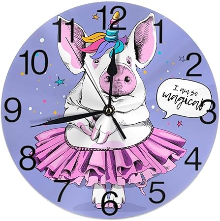Cy Ril Divertente Cartone Animato Maiale Ballerino Di Balletto Tondo Orologio Da Parete Silenzioso Non Ticchettabile A Batteria Facile Da Leggere Orologio Decorativo Per La Casa Art Amazon It Casa E Cucina