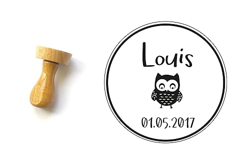 Timbro Conome Personalizzato Con Conome E Data Timbro Nascita Battesimo Disegno Di Gufo Forma Rotonda 4 Cm Annuncio Di Nascita Amazon It Handmade