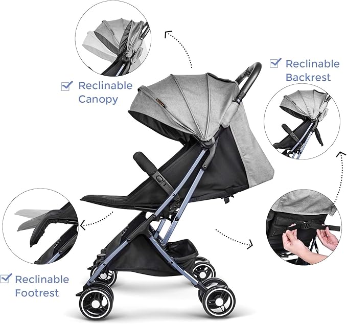 Besrey Passeggino Da Aereo Passeggino Pieghevole E Reclinabile Passeggino Compatto E Leggero Per Bambini Da 6 36 Mesi Grigio Passeggini Compatti Prima Infanzia