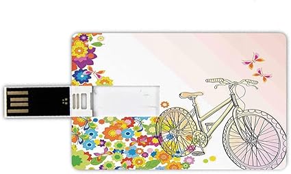 8gb Chiavette Usb A Forma Di Carta Di Credito Bicicletta Memory Card Stile Carta Di Credito Bicicletta Disegnata A Mano Con Percorso A Fiore Allungabile Sixties Fashion Times Hippie Fashion Pattern Fu