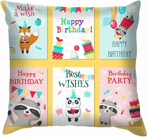 Chou Joo Home Biglietti Di Auguri Di Compleanno Disegnati A Mano Con Animali Selvatici Federe Per Cuscini 50 X 50 Cm Amazon It Casa E Cucina