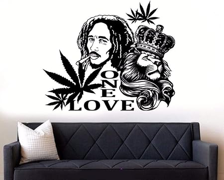 Haotong11 Adesivo In Vinile Bob Marley Lion One Love Adesivo Reggae Musica Murales Rimovibile Poster Home Art Design Decor 57 47 Cm Amazon It Casa E Cucina