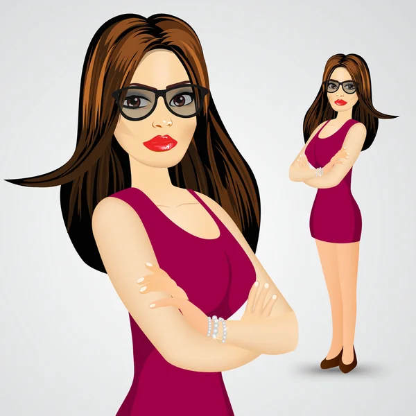 Cartoon Fiducioso Donna In Piedi Con Le Braccia Incrociate Immagine E Vettoriale Alamy