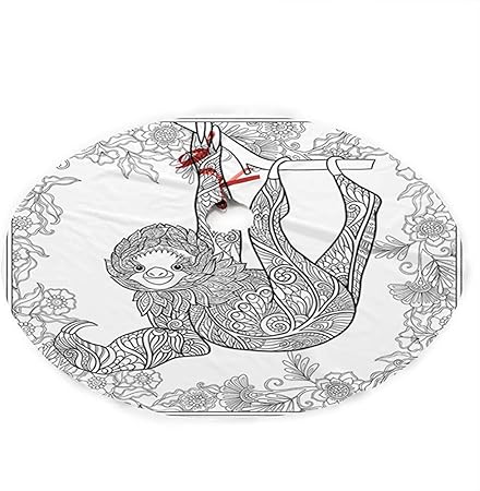 Alldelete Christmas Tree Skirt Gonna Per Albero Di Natale Disegno Di Contorno Di Bradipo Nello Zoo Della Giungla Animale Con Dettagli Ornamentali E Fiori 91cm 36in Amazon It Casa E Cucina