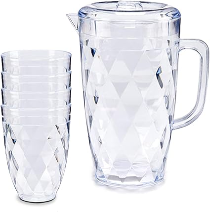 Mge Caraffa Di Design In Acrilico Con Coperchio E 4 Bicchieri Brocca Per Acqua Te Succo Di Frutta 4 Bicchieri Bottiglia Disegno Con Coperchio 1 25 L Amazon It Casa E Cucina