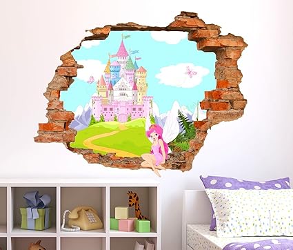 Adesivi Murali Bambini Stickerdesign Made In Italy Adesivo Murale Effetto Buco Nel Muro 3d Castello Magico