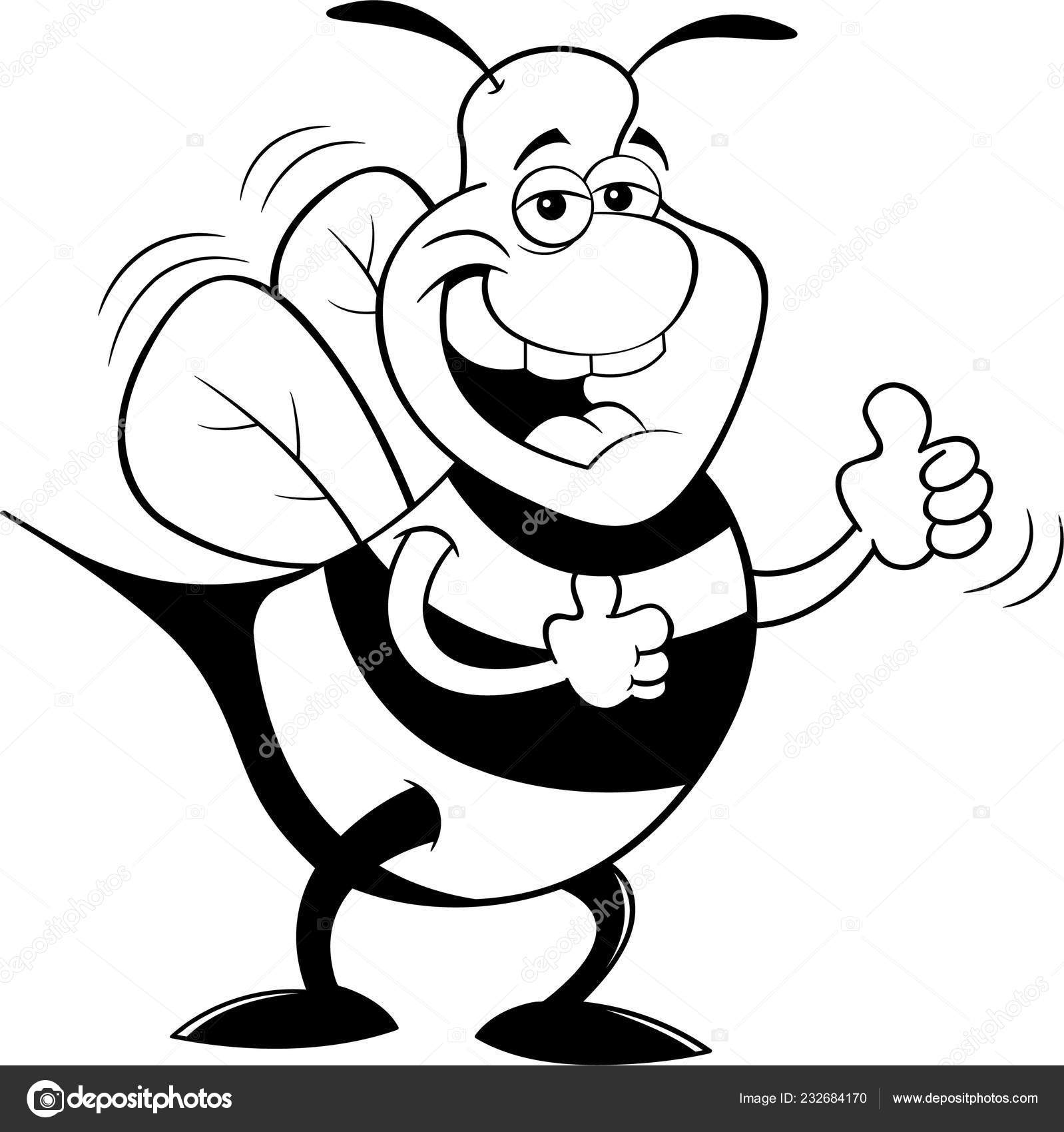Black White Illustration Happy Bumble Bee Giving Thumbs Stock Vector C Kenbenner 232684170
