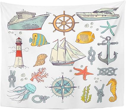 Arazzo Tessuto In Poliestere Stampa Decorazioni Per La Casa Acqua Marine Disegni Da Colorare Doodle Con Diversi Bussola Nautica E Faro Arazzo Da Appendere Per Soggiorno Camera Da Letto Dormitorio Amazon It Casa