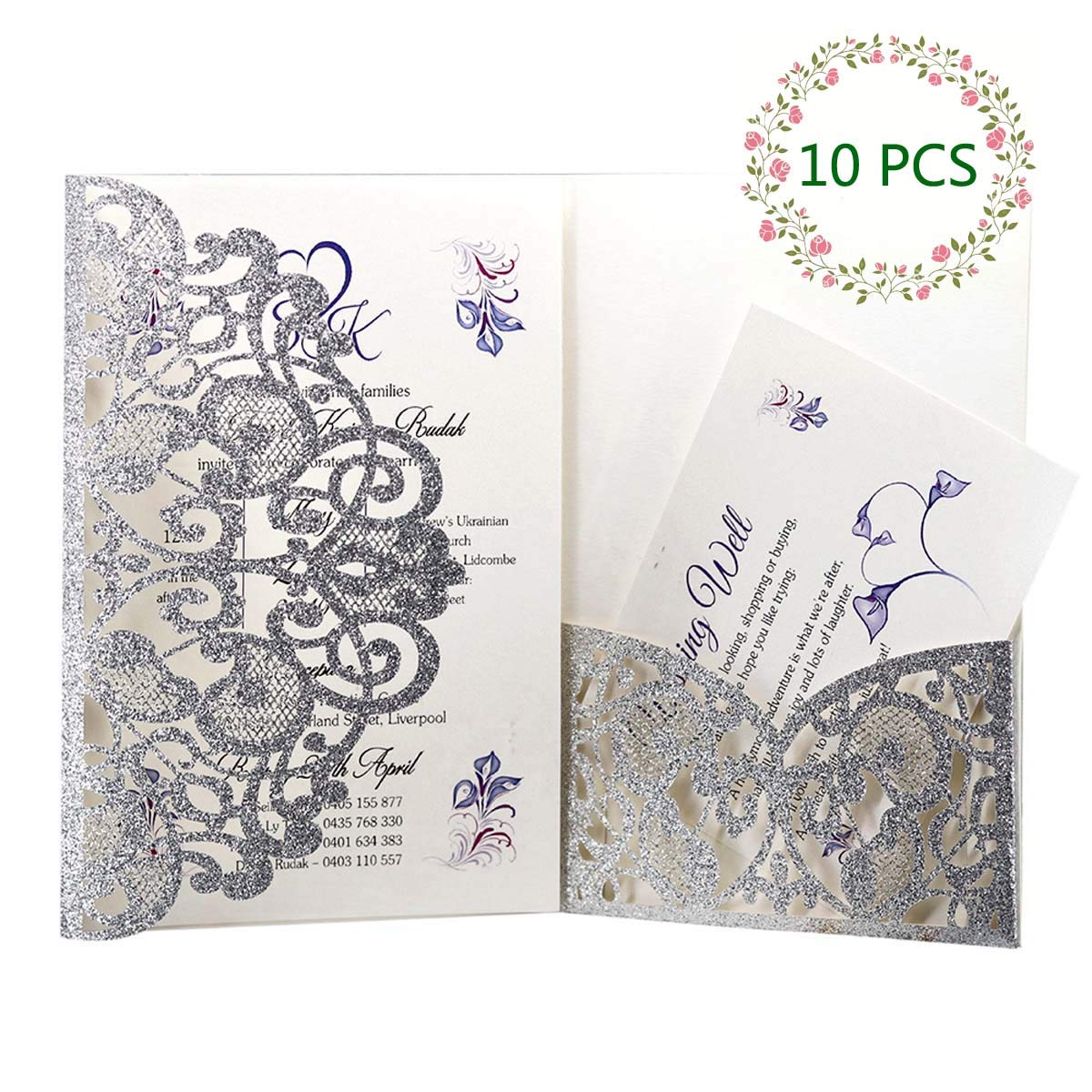 10 Pezzi Romantiche Biglietti Dauguri Silver Buste Nuziali Con Rose Tagliate Al Laser Con Biglietti Dinvito