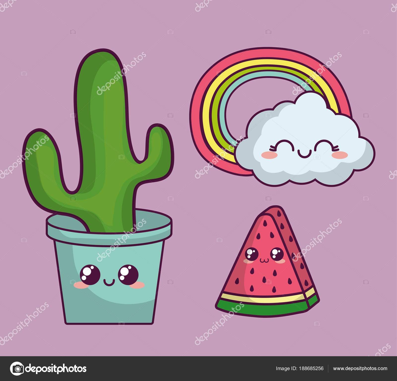Kawaii Cactus Disegno Kawaii Carino Colorito Icone Vaso Illustrazione Fondo Rosa Vettore Cactus Sopra Design Canstock