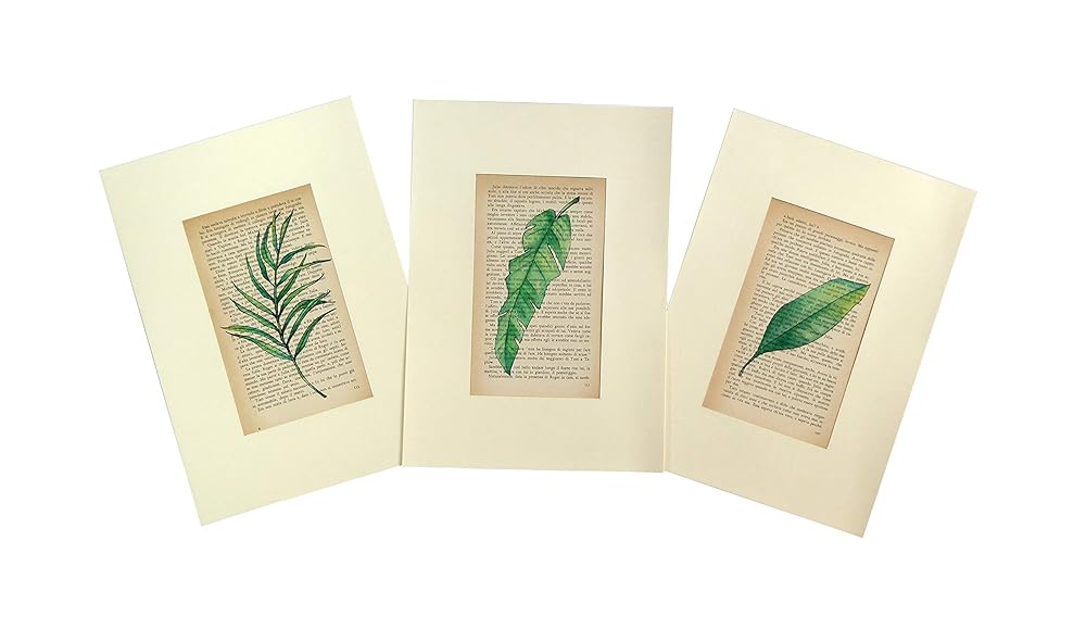 Set Di Tre Disegni Foglie Tropicali Con Passepartout Linea Foglie E Fogli Disegnate A Mano Su Pagina Di Libro Amazon It Handmade