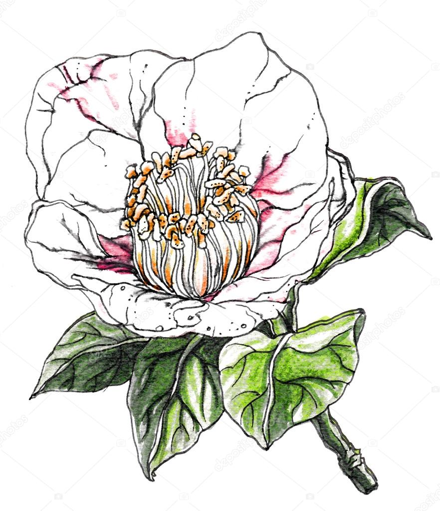 Camellia Flower Drawing Camellia Japonica Flowers Drawing And Sketch Stock Vector C Suwi19 169887046